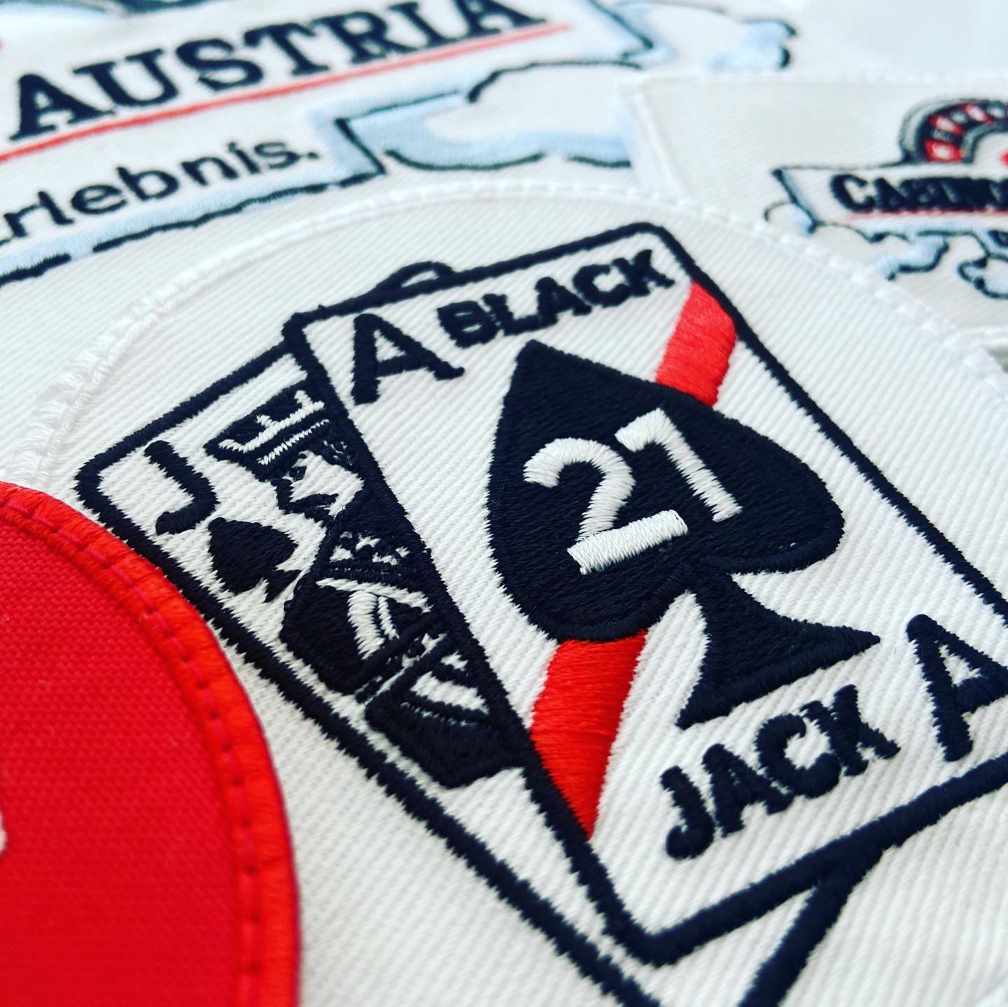Aufnäher nach Kundenwunsch – viele Formen & Farben möglich. Über 400 Garnfarben lagernd. Teil- oder vollgestickt, optional mit Bügelfolie oder Klett/Flausch.
